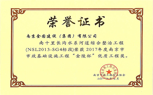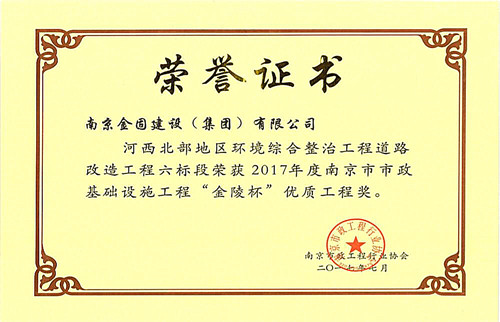 2017年度南京市市政基礎設施工程“金陵杯”優(yōu)質工程獎