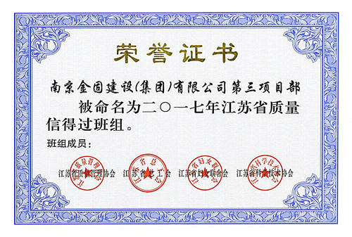 2017年江蘇省質量信得過班組