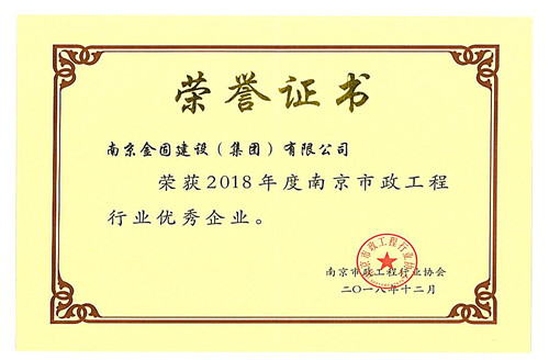 2018年度南京市政工程行業(yè)優(yōu)秀企業(yè)