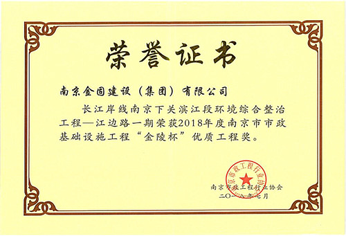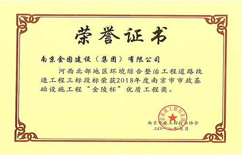 2018年度南京市市政基礎設施工程“金陵杯”優(yōu)質工程獎