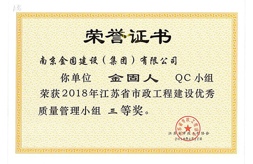 2018年江蘇省市政工程建設優(yōu)秀質量管理小組三等獎