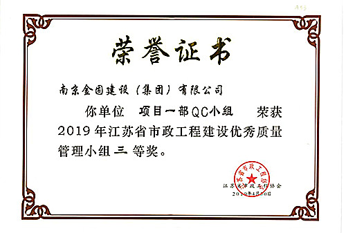 2019年江蘇省市政工程建設優(yōu)秀質量管理小組三等獎