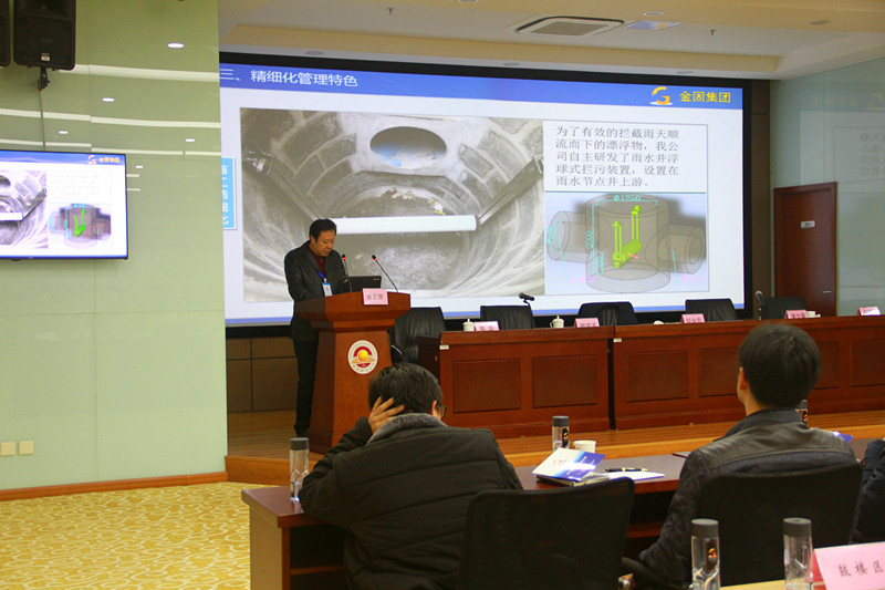 下午兩點半,所有參加觀摩人員在南財科技園樓下集合完畢后步行前往本次現(xiàn)場觀摩地點--金川花苑小區(qū)。一進入小區(qū)映入眼簾的是綠島兩側(cè)的長廊式展板,觀摩人員在現(xiàn)場解說員的帶領(lǐng)下邊走邊看。在施工現(xiàn)場,金固集團將過程管理精細化充分的作了展示,立管施工、檢查井砌筑、管道埋設(shè)、沖擊夯壓實度試驗、雨水排口裝置……在一塊塊展板、一張張展示柜、一座座井口前,觀摩人員不時駐足停留,仔細觀察,熱情詢問?,F(xiàn)場觀摩之后,所有人員返回到南財科技園報告廳內(nèi),召開雨污分流工程精細化管理及驗收工作交流會,會議由市建委建設(shè)處董文量副處長主持召開。會上,首先由南京新廈市政建設(shè)項目管理有限公司介紹了項目的建設(shè)情況,南京金固建設(shè)(集團)有限公司副總經(jīng)理姜輝做了精細化管理及驗收工作經(jīng)驗交流,隨后,南京市市政工程質(zhì)量安全監(jiān)督站嚴杰科長對雨污分流工程竣工驗收管理辦法(征求意見稿)進行了解讀。會議最后,市建委何金雪副主任圍繞“破題、引領(lǐng)、集成”六字作了提綱挈領(lǐng)的講話。