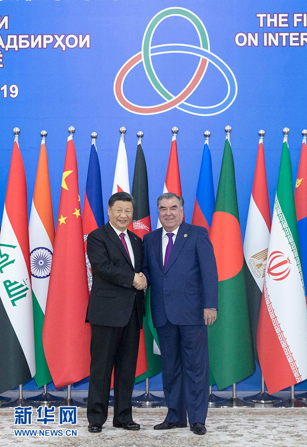 6月15日,亞洲相互協(xié)作與信任措施會(huì)議第五次峰會(huì)在塔吉克斯坦首都杜尚別舉行。國(guó)家主席習(xí)近平出席峰會(huì)并發(fā)表重要講話(huà)。這是習(xí)近平抵達(dá)納烏魯茲宮迎賓廳,受到塔吉克斯坦總統(tǒng)拉赫蒙熱情迎接。 新華社記者 沙達(dá)提 攝