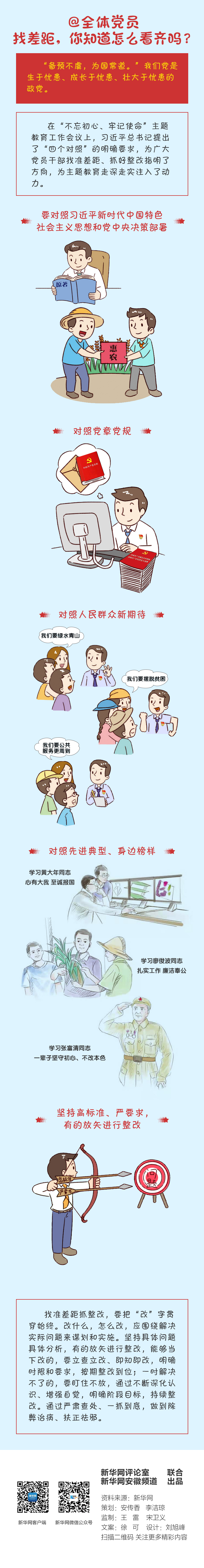 差距不找不明,問(wèn)題不攻不破。開展“不忘初心、牢記使命”主題教育,找差距是要牢牢把握的總要求之一。找差距,就是要對(duì)照習(xí)近平新時(shí)代中國(guó)特色社會(huì)主義思想和黨中央決策部署,對(duì)照黨章黨規(guī),對(duì)照人民群眾新期待,對(duì)照先進(jìn)典型、身邊榜樣,堅(jiān)持高標(biāo)準(zhǔn)、嚴(yán)要求,有的放矢進(jìn)行整改。